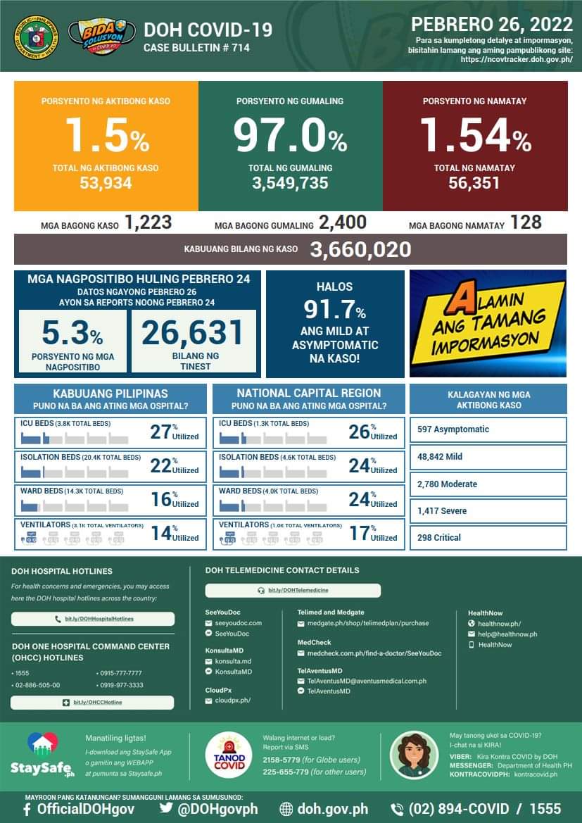 (Eagle News)–COVID-19 cases in the Philippines rose to 3,660,020 after the Department of Health reported 1,223 additional cases.