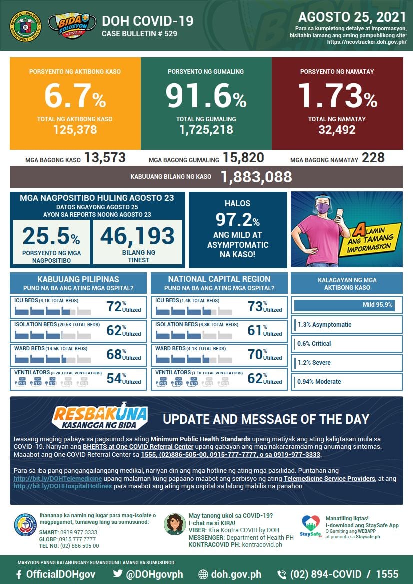 (Eagle News) — COVID-19 cases in the Philippines climbed to 1,883,088 after the Department of Health reported 13,573 additional cases.
