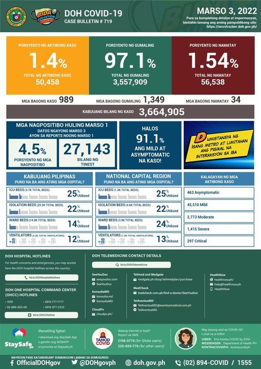 (Eagle News)–COVID-19 cases in the Philippines rose to 3,664,905 after the Department of Health reported 989 additional cases.