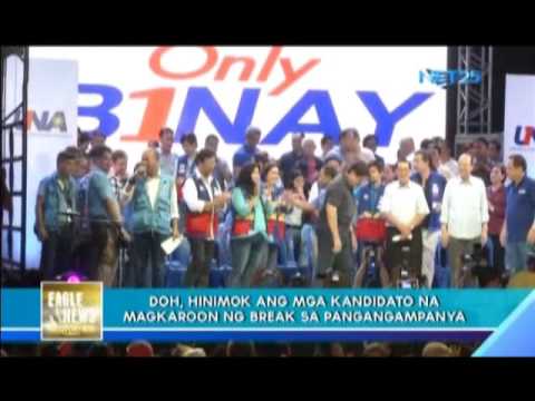MANILA, Philippines – The Department of Health advised candidates and their supporters to have a break or rest period during their campaign in order to avoid heat stroke. The DOH added that the hours between 10 in the morning to 2 in the afternoon should be avoided due to the high amount of ultraviolet radiation. Said department also added that the candidates and their supporters should also regularly consume water.