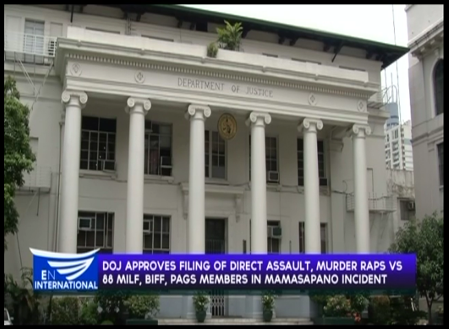 MANILA, Philippines (Eagle News) — The Department of Justice (DOJ) on Monday approved the filing of complex crime of direct assault with murder against 88 members of the Moro Islamic Liberation Front (MILF), Bangsamoro Islamic Freedom Fighters (BIFF) and Private Armed Groups (PAGs) in connection to the January 25 Mamasapano incident which led to the deaths of 44 members of the Special Action Force (SAF) along with international terrorist Zulkifli Bin Hir, also known as Marwan.
