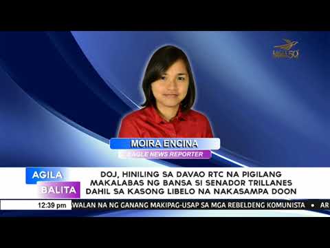 (Eagle News) — Naghain ng mosyon ang Department of Justice (DOJ) sa Davao City para hilingin sa hukuman doon na may hawak sa kasong libelo laban kay Senador Antonio Trillanes IV na pigilan itong makaalis ng bansa.