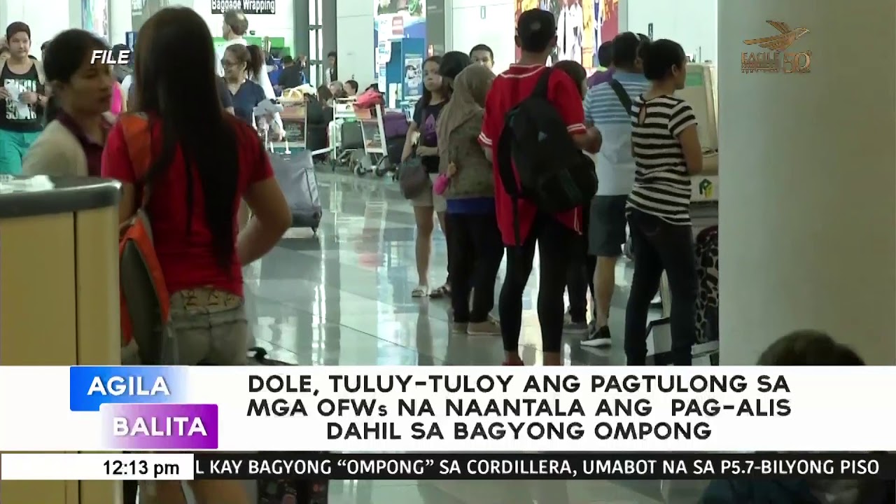(Eagle News) — Tuluy-tuloy ang pagtulong na ginagawa ng Department of Labor and Employment (DOLE) sa mga Overseas Filpino Worker (OFWs) na naapektuhan ng bagyong Ompong.