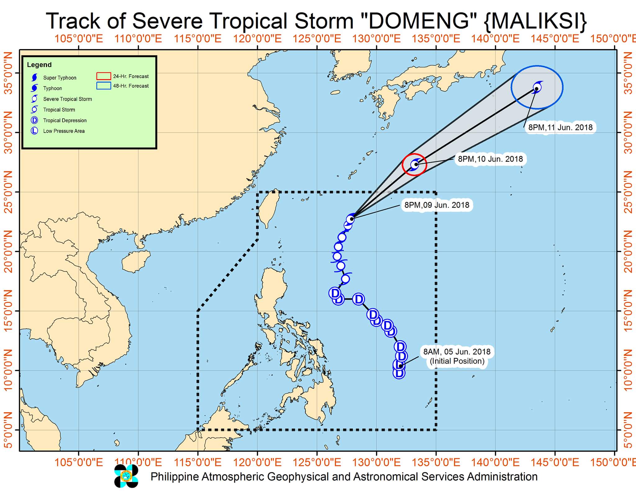 (Eagle News)–“Domeng” is expected to leave the Philippine Area of Responsibility between 6 a.m. to 10 a.m. today, June 10, but will continue to enhance the southwest monsoon, resulting in rains in some parts of the country.