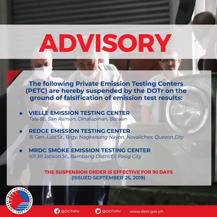 (Eagle News)–The Department of Transportation has suspended several private emission test centers for alleged falsification of emission test results.