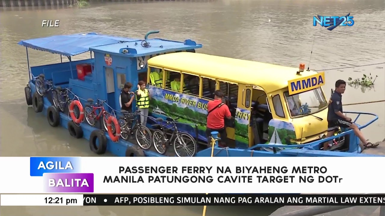 (Eagle News) — Target ng Department of Transportation (DOTr) na makapaglunsad ng passenger ferry na bibiyahe mula Metro Manila patungo ng Cavite.