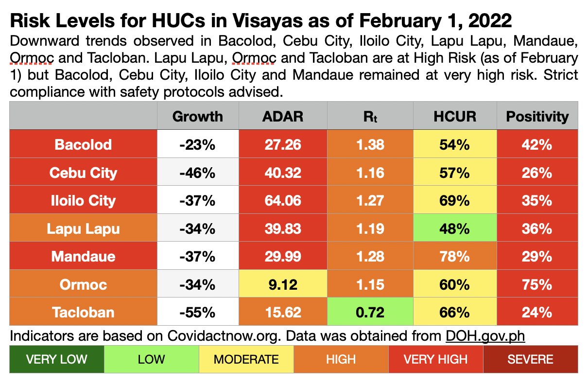 The greatest decline in Covid-19 growth was noted in Tacloban City at -55 percent, followed by Cebu City with -46 percent, Iloilo City and Mandaue City which both have -37 percent, Ormoc and Lapu Lapu cities which both have -34 percent, and Bacolod City with a -23 percent growth.