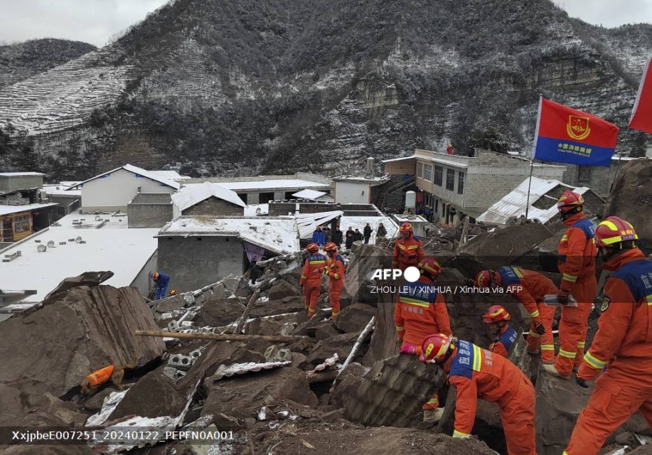 (240122) — ZHAOTONG, Jan. 22, 2024 (Xinhua) — Rescuers work at the site of a landslide in Liangshui Village, Tangfang Town in the city of Zhaotong, southwest China’s Yunnan Province, Jan. 22, 2024. A total of 47 people were buried in a landslide that struck southwest China’s Yunnan Province early Monday.
