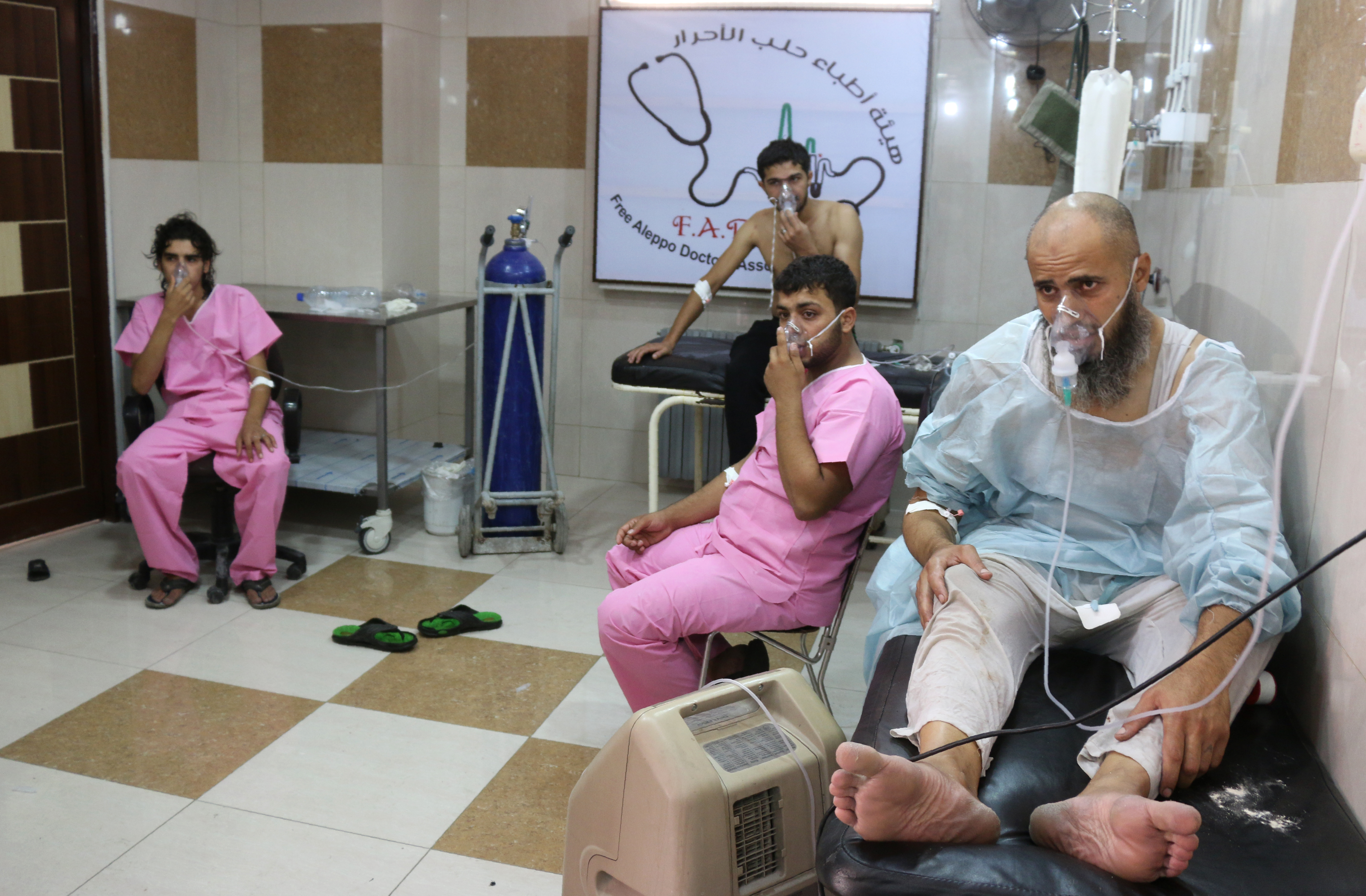 BEIRUT, Lebanon (AFP) — Dozens of people had to be treated for breathing problems in the Syrian battlefront city of Aleppo after regime helicopters dropped barrel bombs on a rebel-held district Tuesday, a monitor said.