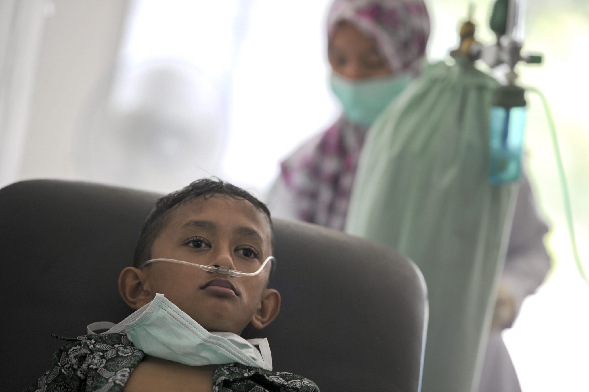 Some schoolchildren were still able to go to school in Meulaboh Wednesday wearing masks but several schools suspended classes so students could stay at home.