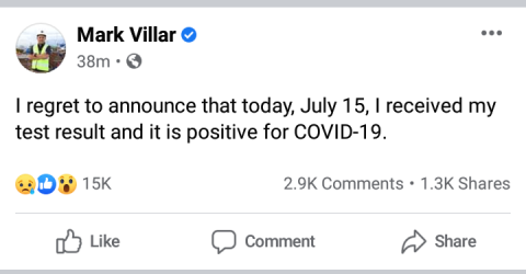 Villar himself made the announcement in a Facebook post on Wednesday, July 15.