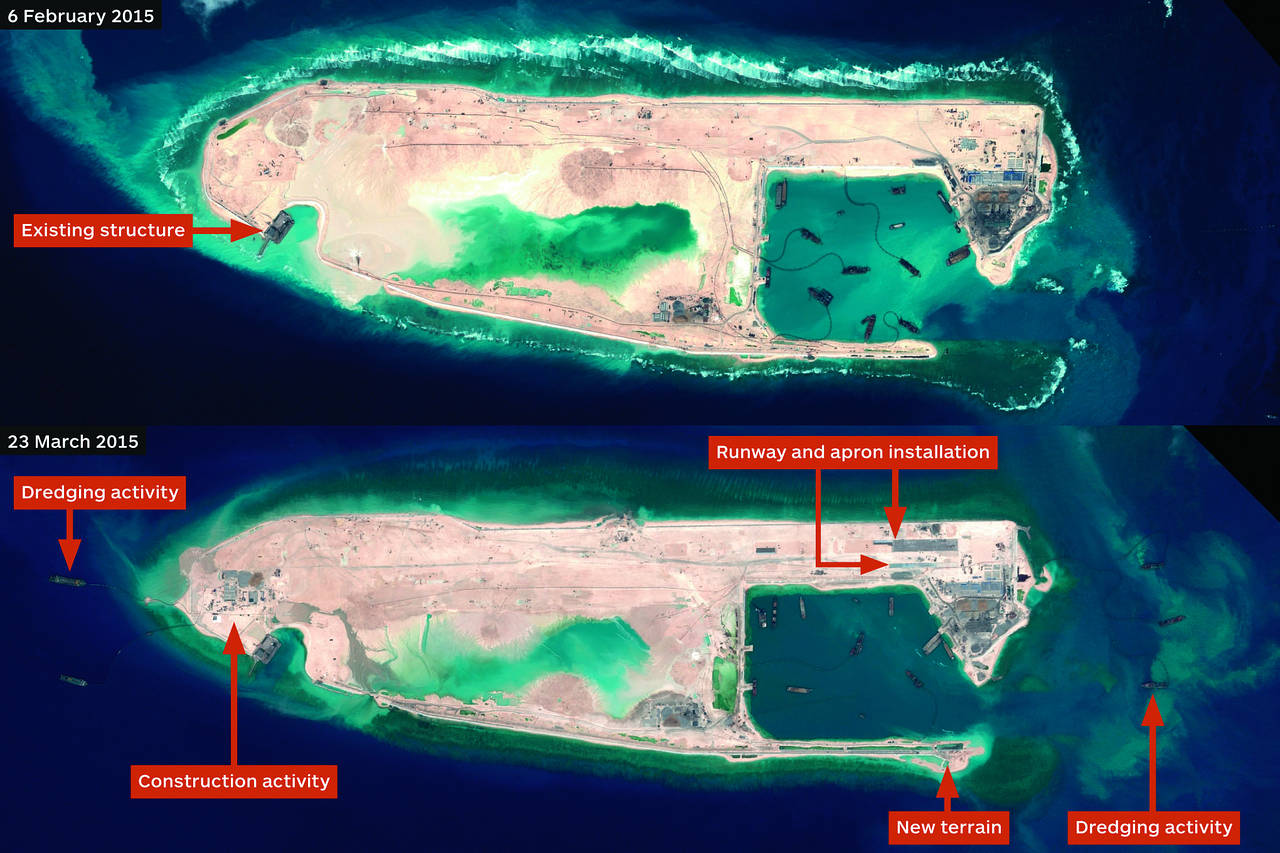 China has built up artificial islands, some with airstrips, capable of hosting military facilities.