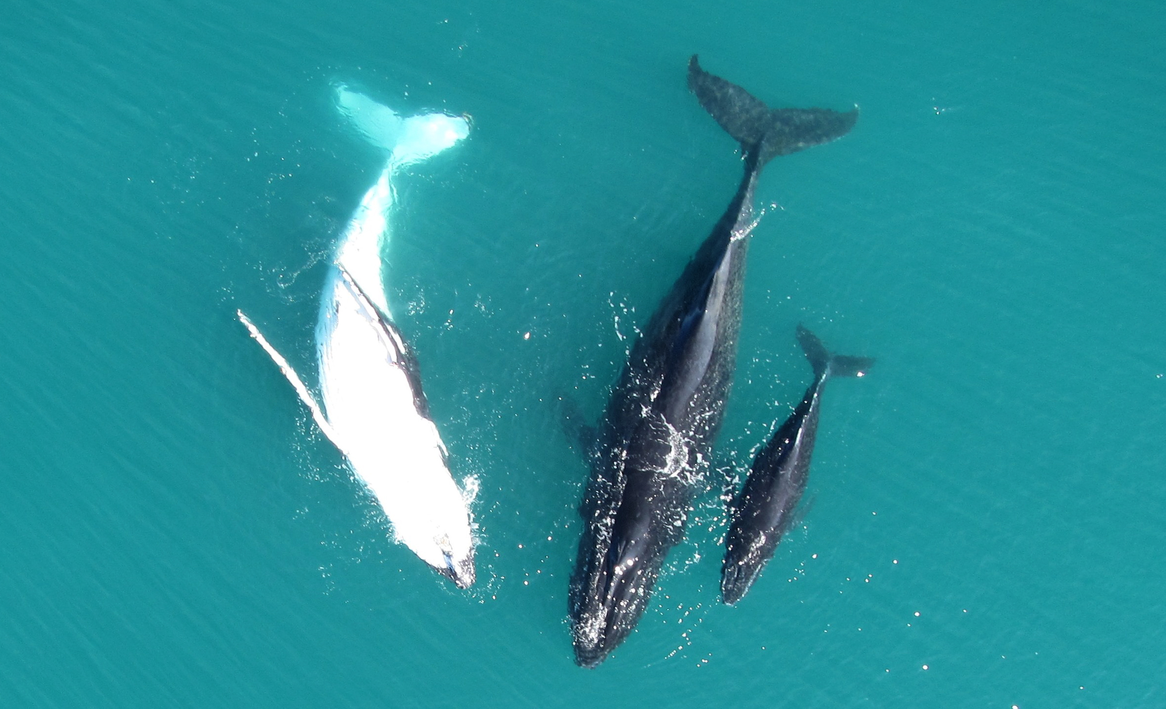 Researchers spotted the baby white whale while using a drone to conduct aerial surveys of southern right whale populations off the coast of Western Australia.