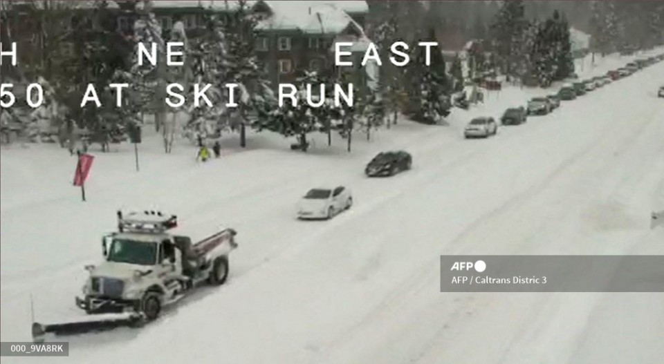 This handout photo obtained on December 27, 2021 from Caltrans Distric 3, shows Highway 50/Lake Tahoe Boulevard, in Lake Tahoe, California, covered in snow. (Photo by various sources / AFP)