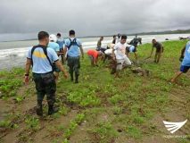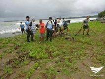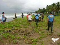 Nagtulong-tulong sila na alisin ang mga patay na dahon at bunga ng niyog na nagkalat sa dalampasigan. Inalis din nila ang iba pang mga basurang inanod ng alon tulad ng mga plastic.