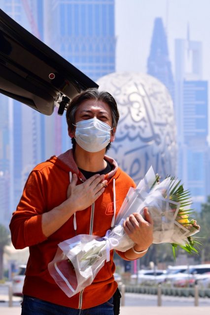 Doctors and nurses, still wearing protective gear, lined up clapping for Hiroaki Fujita as he left the Dubai World Trade Centre which was converted to a 3,000-bed field hospital in April to treat virus patients.