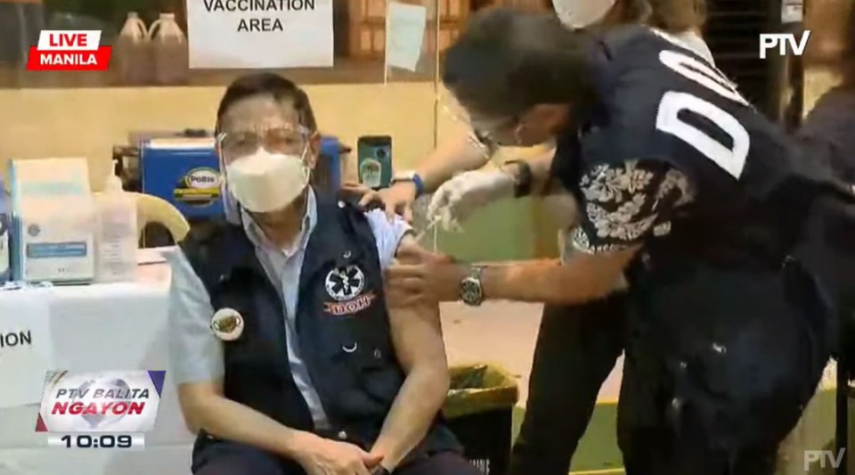 The vaccination of the health secretary was streamed live in a program of the state-run PTV-4 as part of government’s efforts to convince more Filipinos to get vaccinated as protection against COVID-19.