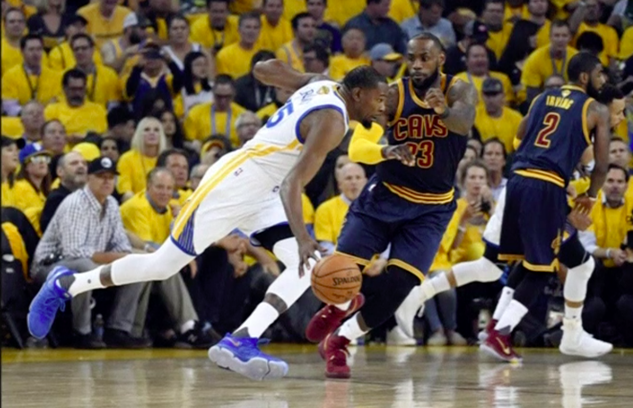 The highly-anticipated meeting between the defending champion Cavaliers and the top-seeded Warriors did not disappoint initially, with sensational dunks by the Cavaliers’ LeBron James as well as the Warriors’ Durant and JaVale McGee during a see-sawing first quarter.