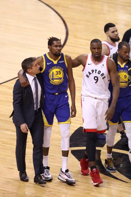 Durant, the 2017 and 2018 NBA Finals Most Valuable Player, suffered a right Achilles tendon injury in the Warriors’ 106-105 victory over Toronto, trimming the Raptors’ lead to 3-2 in the best-of-seven series.