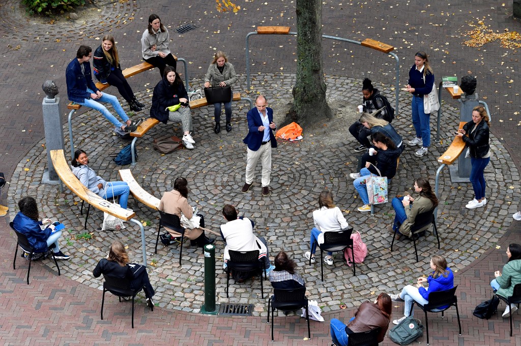 MIDDLEBURG, Netherlands (AFP) — A Dutch university is holding open-air classes in parks, public squares and parking lots to limit the number of lectures taking place online because of the coronavirus pandemic.