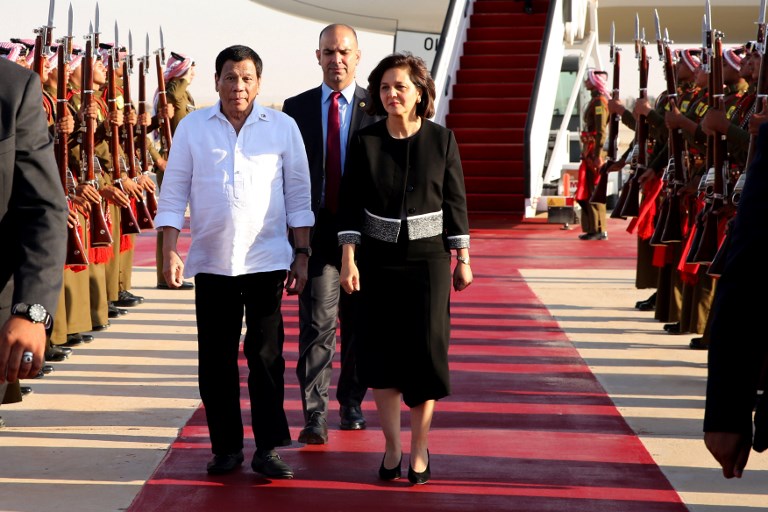 Philippine Ambassador to the Hashemite Kingdom of Jordan Ambassador Akmad Sakkam and Ministry of Social Development Minister Hala Lattouf welcomed Duterte in the Jordan capital, together with the members of his delegation,