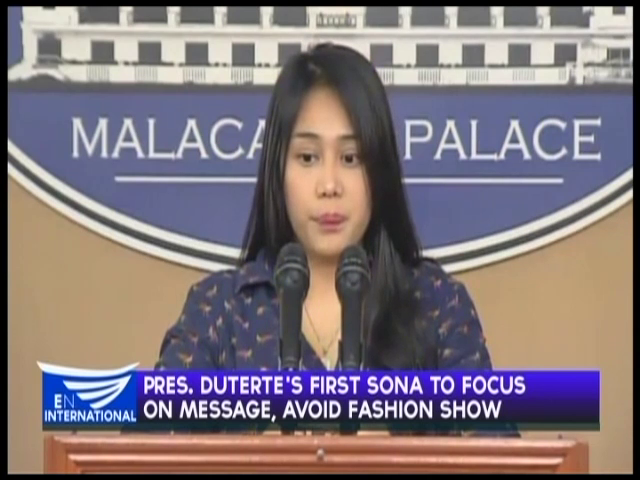 MANILA, Philippines (Eagle News) — Finance Department Spokesperson Paola Alvarez said President Rodrigo R. Duterte’s first State of the Nation Address (SONA) will no longer be a fashion show as past SONAs events have been.