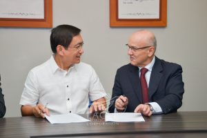 Mr. Jorge A. Cabacungan, President of Eagle Broadcasting Corporation and Mr. Pedro Santos, Jr., Vice-President for NETS of Philippine Telegraph and Telephone Corporation (PT&T) signed the Memorandum of Agreement for the partnership