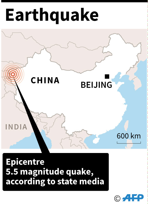 The shallow 5.4-magnitude quake struck at 5:58 am (2158 GMT Wednesday) 213 kilometers (133 miles) south-southwest of the ancient Silk Road city of Kashgar, the US Geological Survey said.