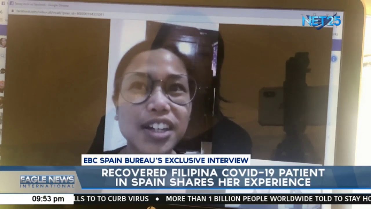 (Eagle News) – A Filipina who has been living in Spain for eight years and who was recently confirmed to have been infected with coronavirus was interviewed by Eagle Broadcasting Corporation in Barcelona after she had been discharged from the hospital to recover at home.