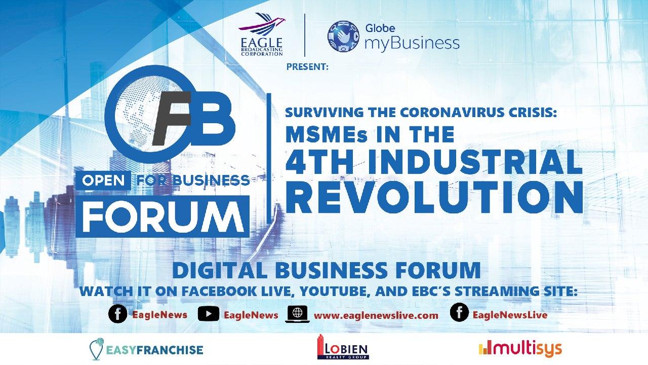 With the theme “MSMEs in the 4th Industrial Revolution”, OPEN FOR BUSINESS Forum will be conducting its 1st digital public forum on March 28, 8 AM to 2 PM to be aired live on the Facebook page of Eagle News, YouTube channel of NET25, and EBC’s streaming site eaglenewslive.com. The highlights of the digital forum will be a special TV feature of EBC’s business show OPEN FOR BUSINESS on April 4-5, 2020.