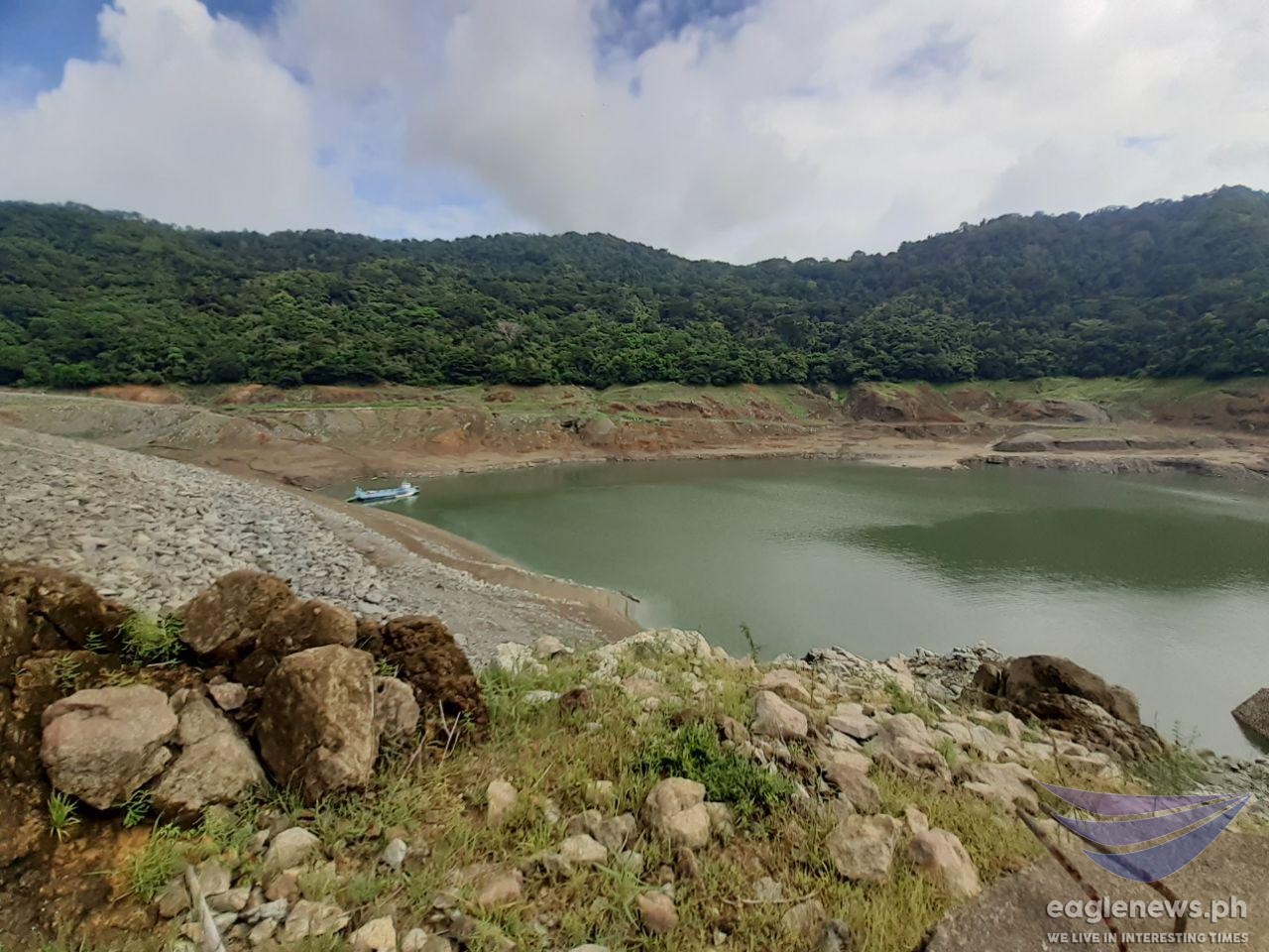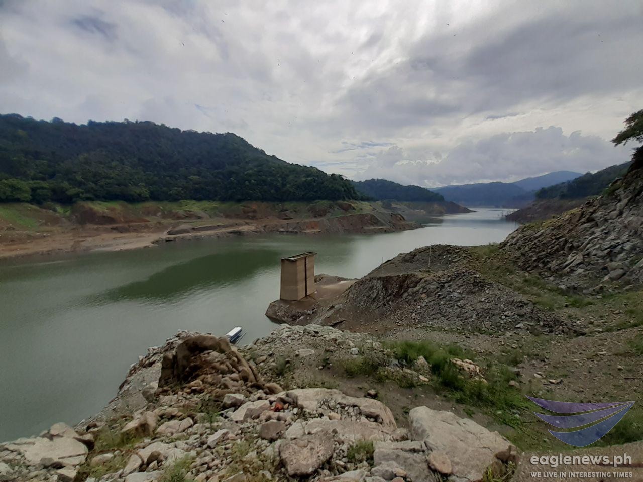 (Eagle News) — Amid a dramatic backdrop of vast cloudy skies, Angat Dam in Bulacan — one of the main sources of water for millions of Metro Manila residents — can be seen here in these photos with its exposed bare embankment that had previously submerged in water.