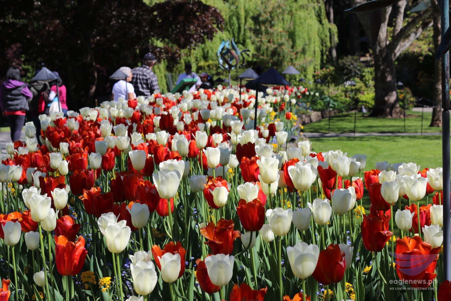 Tulips of various colors at the Butchart Gardens in Brentwood Bay, British Columbia, Canada, located near Victoria on Vancouver Island. The gardens, which about a million tourists visit each year, have been designated as a National Historic Site in Canada. Photo by Dale Daza, EBC correspondent in Canada. (Eagle News Service)