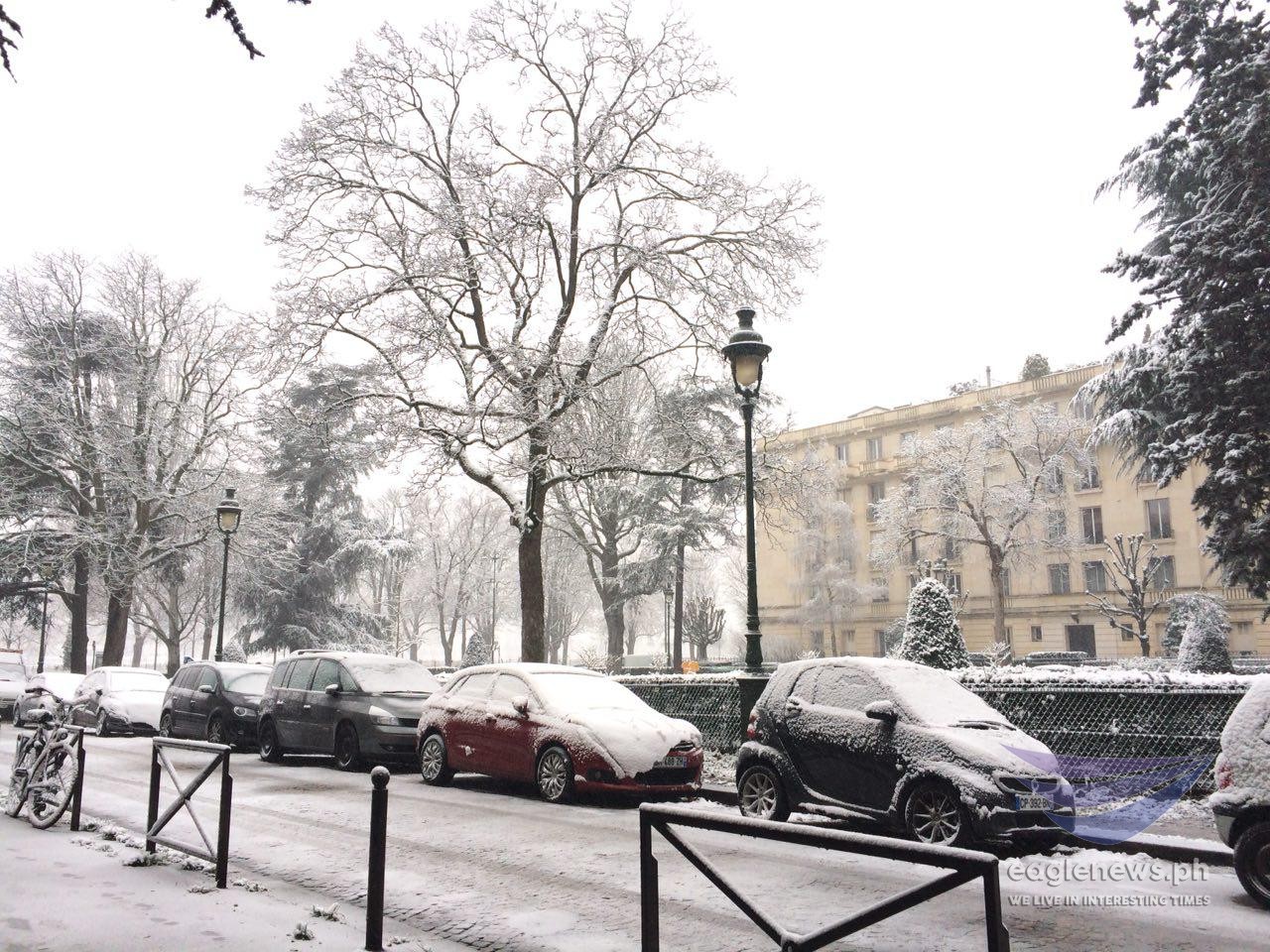 Cars covered in snow in Paris, France as the area is hit by heavy snow. Photo taken on Wednesday, February 7, 2018 by Alliah Garcia, EBC correspondent in Paris, France. (Eagle News Service)