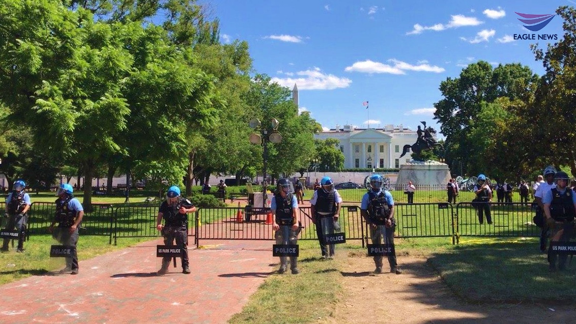WASHINGTON (Eagle News) — After another night of protests, that sometimes included looting, vandalism and violence, demonstrations that weren’t as violent but nonetheless passionate continued in the the nation’s capital on Monday afternoon, June 1, 2020. Protesters gathered in front of Lafayette Square, the park directly in front of the White House, to express their frustrations over racism and police brutality in the U.S.