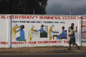 A man walks by a mural with health instructions on treating the Ebola virus, in Monrovia, November 18, 2014. REUTERS/James Giahyue