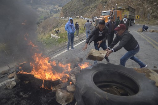 QUITO, Ecuador (AFP) — Indigenous and rural Ecuadorans blocked roads in several provinces Wednesday on the second day of protest against soaring fuel prices amid a countrywide state of emergency.