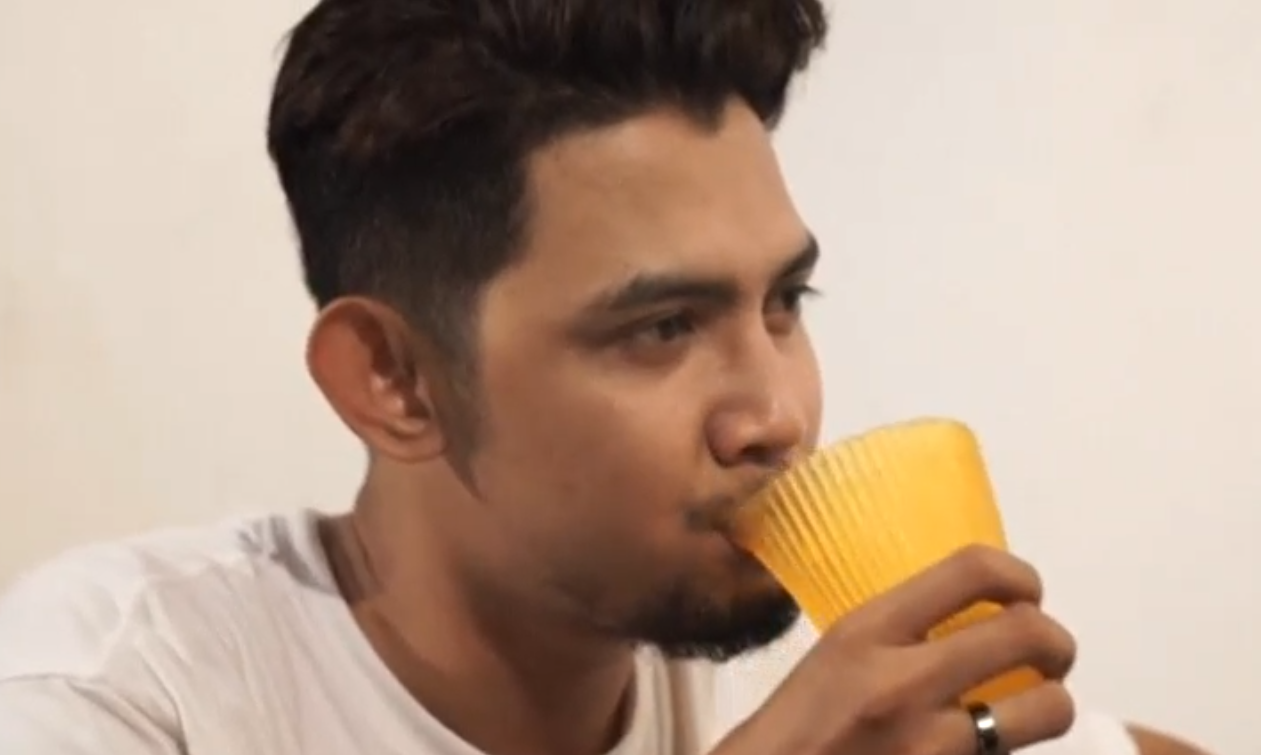This photograph shows a man eating Evoware’s seaweed cup after drinking its content. /Reuters/