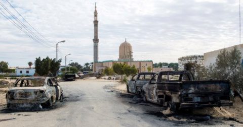 Armed attackers killed at least 235 worshippers in a bomb and gun assault on the packed mosque in Egypt’s restive North Sinai province, in the country’s deadliest attack in recent memory. / AFP PHOTO