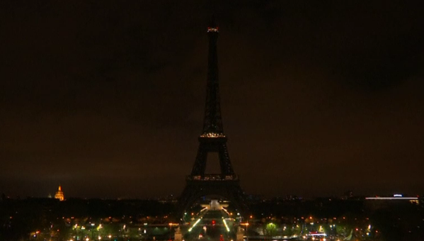PARIS, France (Reuters) — Paris’s Eiffel Tower went black an hour earlier than usual in memory of the 14 victims of the St Petersburg attack on Tuesday (April 4).