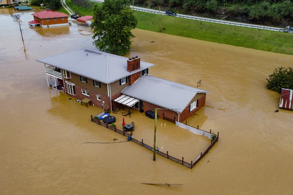 Many roads resembled rivers, mangled cars littered the landscape and muddy brown floodwaters lapped against the rooftops of low-lying houses in the state’s Appalachian region.