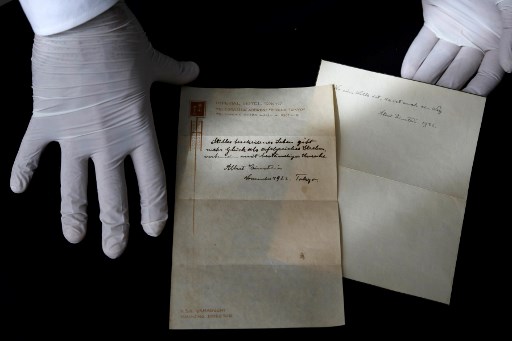 In October, a note that Einstein gave to a courier in Tokyo briefly describing his theory on happy living sold at auction in Jerusalem for $1.56 million.