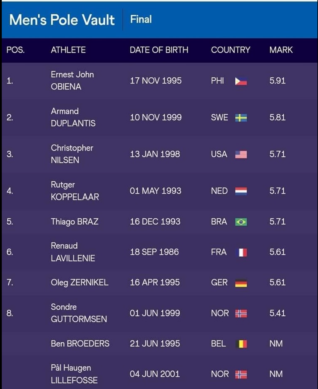 Obiena thus broke the legendary Duplantis’ winning streak as the Swede pole vaulter suffered a rare loss.