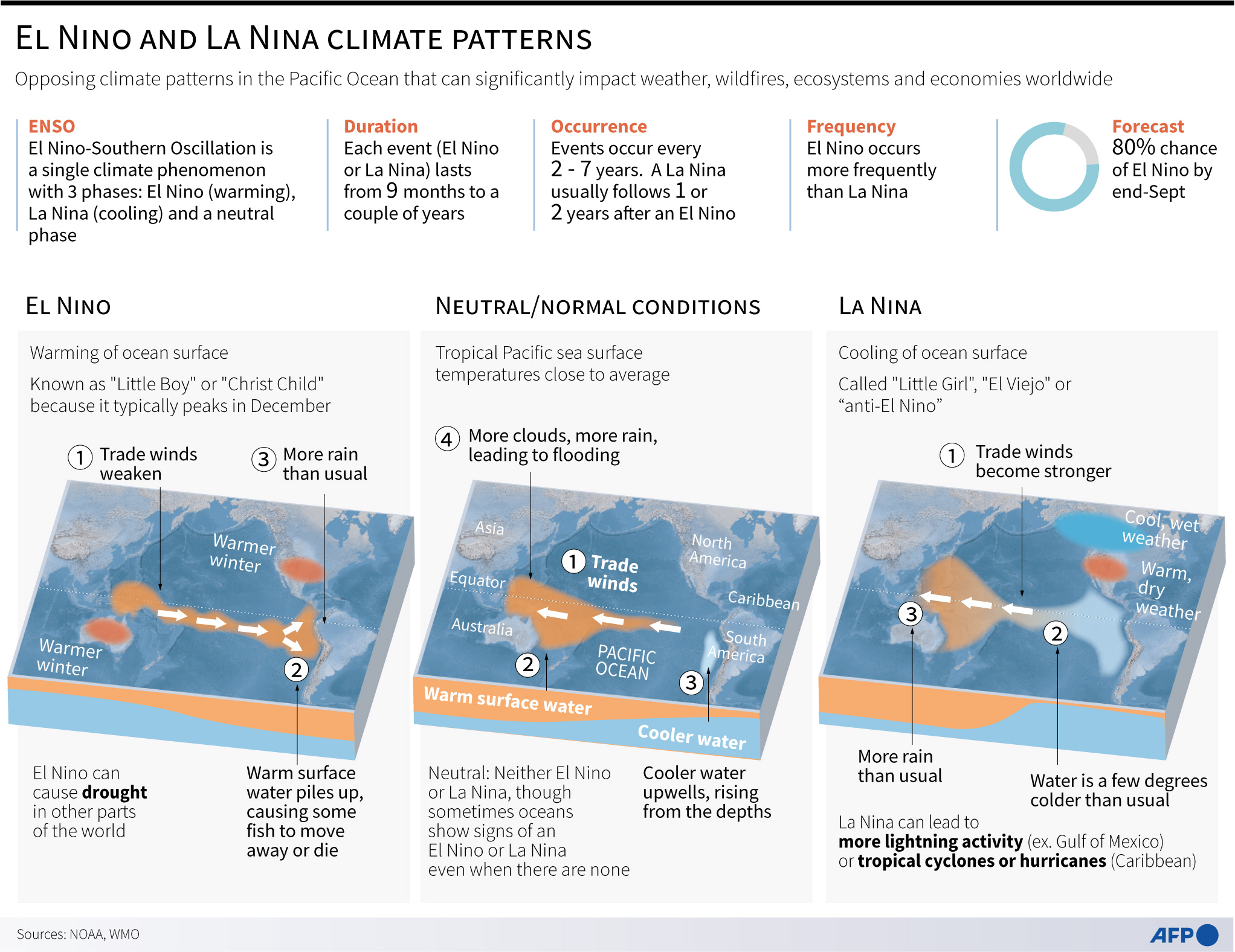 Marked by warmer-than-average sea surface temperatures in the central and eastern Pacific Ocean near the equator, the weather pattern last occurred in 2018-19, and takes place every 2-7 years on average.