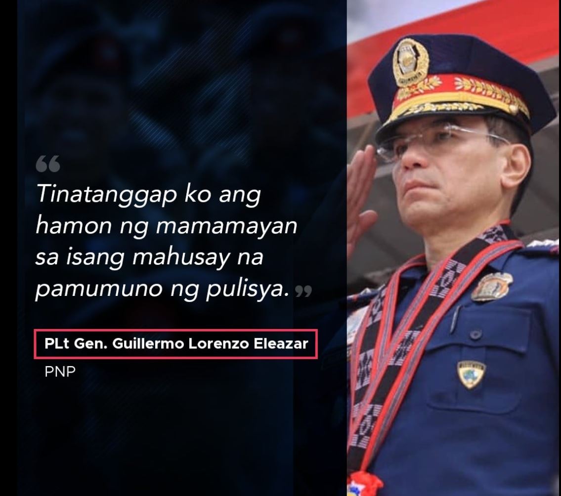 (Eagle News) — The new Philippine National Police (PNP) chief Lt. General Eleazar thanked President Rodrigo Duterte for choosing him to lead the 220,000 strong police force, as he acknowledged the “rare opportunity” to be appointed as PNP chief.