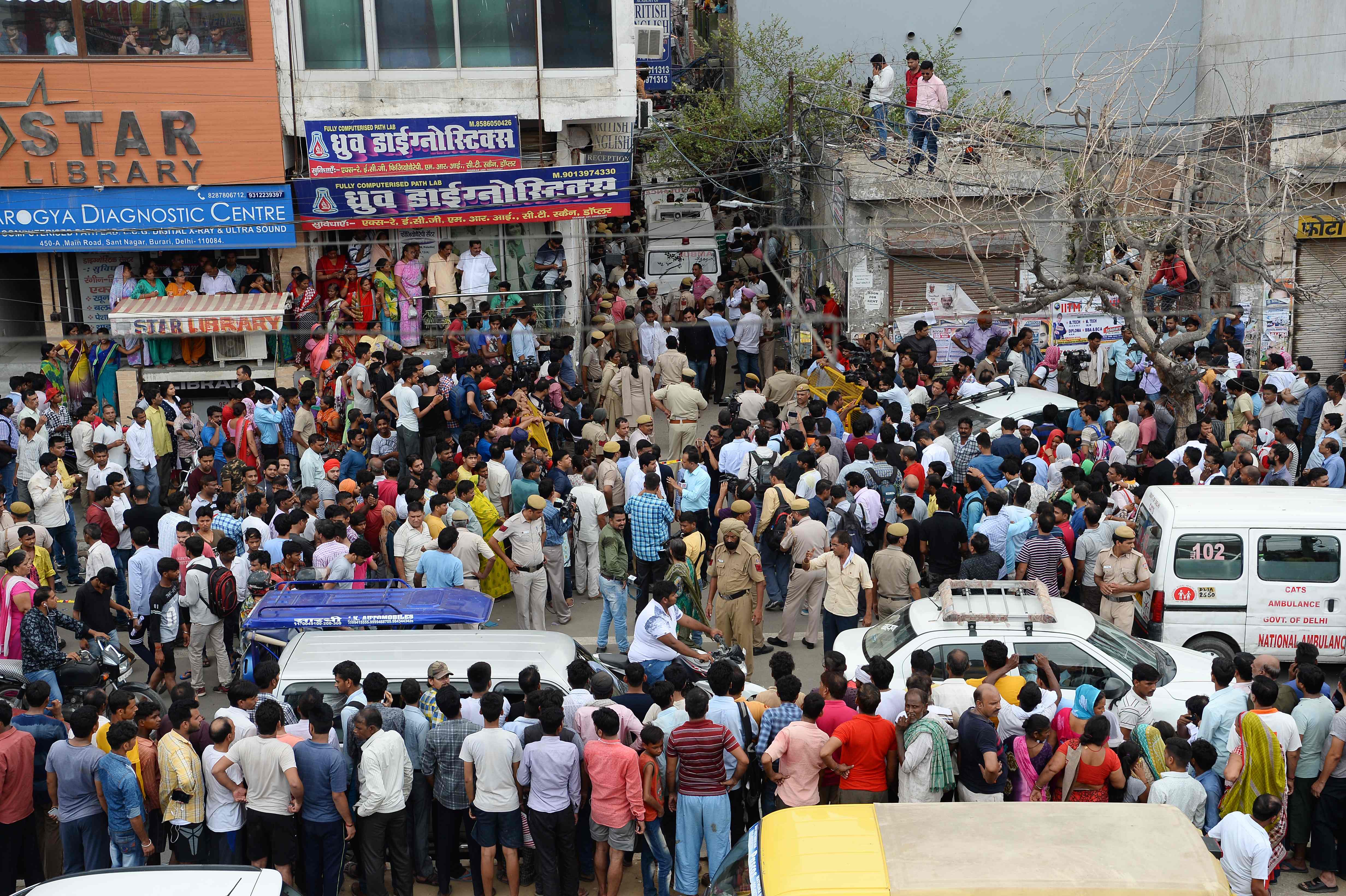 Police have cordoned off the home in Burari in the north of the capital where the bodies of seven women and four men were discovered July 1. “10 of the 11 family members were found hanging when we reached the house. The last, a 75-year-old female, was dead on the floor,” a Delhi police official told AFP. / AFP PHOTO / Sajjad HUSSAIN