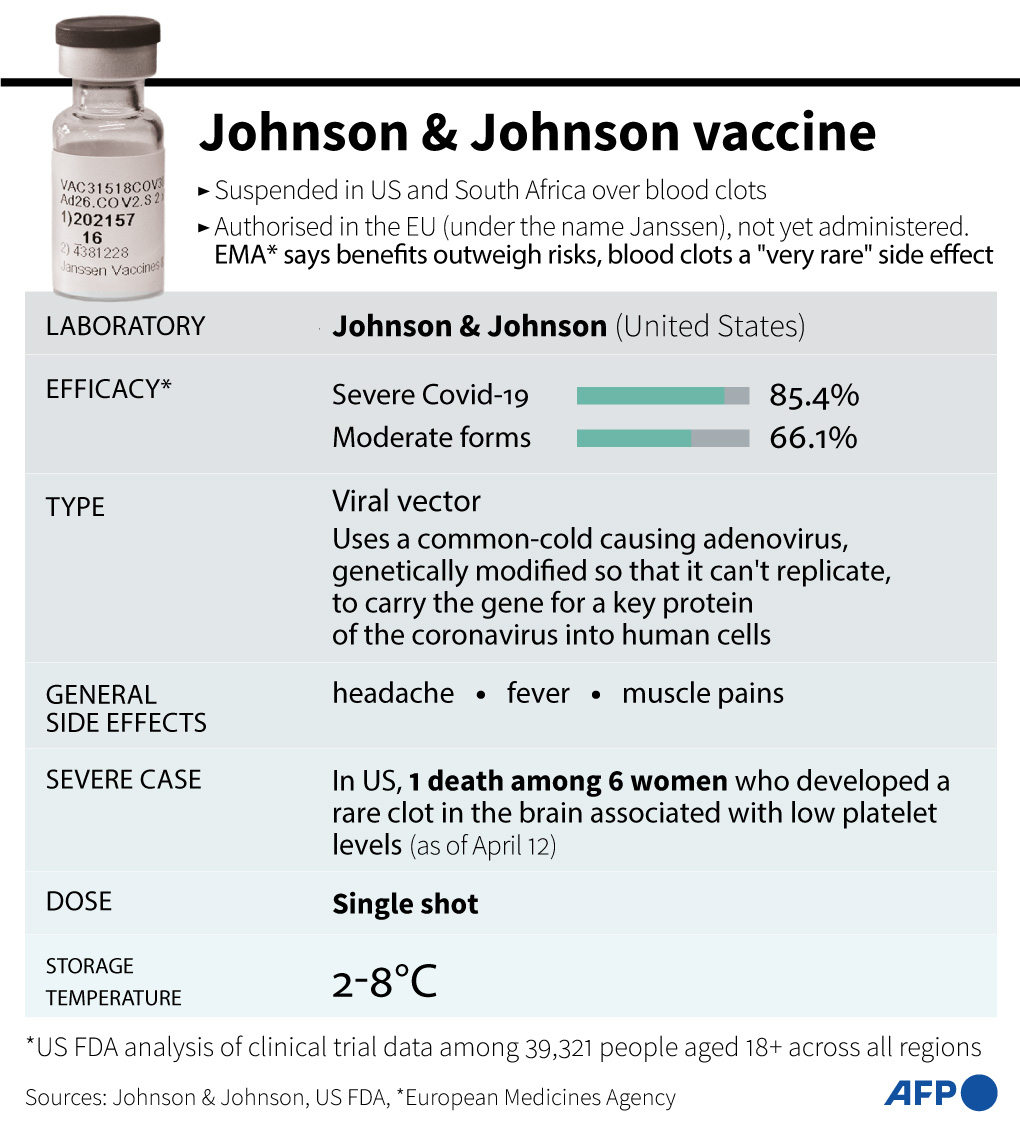 The United States has also paused the use of the J&J vaccine pending a decision expected on Friday.