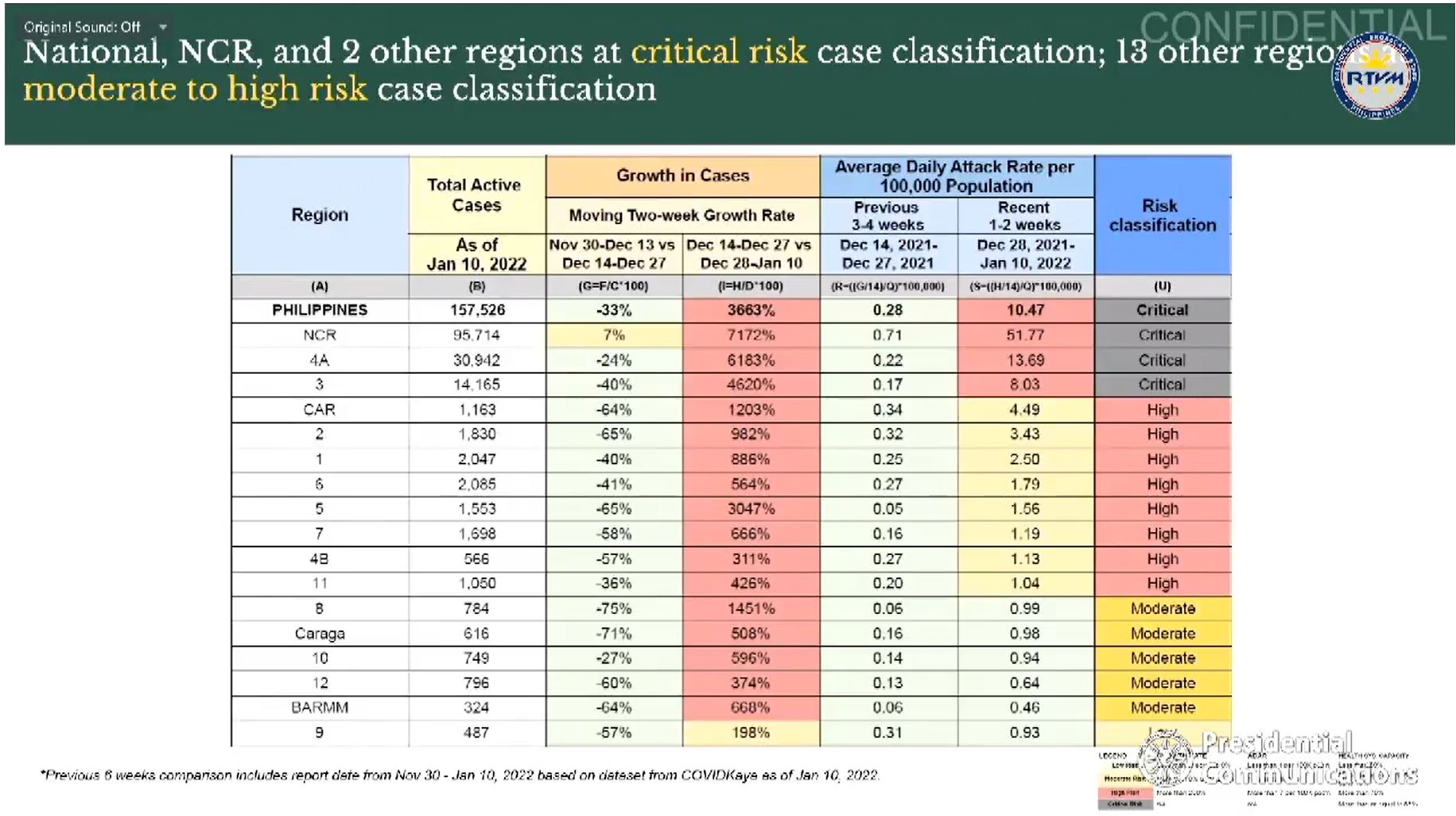 Duque said that the regions under critical risk are the National Capital Region (NCR), Region 4-A (Calabarzon) and Region 3 (Central Luzon).