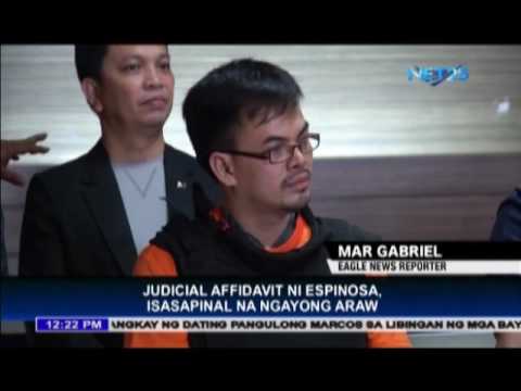 Espinosa is scheduled to swear an oath on the veracity of his affidavit in front of his lawyers.