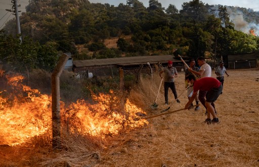 MARMARIS, Turkey (AFP) — The European Union sent help to Turkey on Monday and volunteers joined firefighters in battling a week of violent blazes that have killed eight people and put pressure on President Recep Tayyip Erdogan.