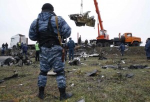 A pro-Russian separatist watches as a crane carries wreckage of the downed Malaysia Airlines flight MH17 at the site of the plane crash near the village of Hrabove (Grabovo) in Donetsk region, eastern Ukraine November 16, 2014. REUTERS/Maxim Zmeyev